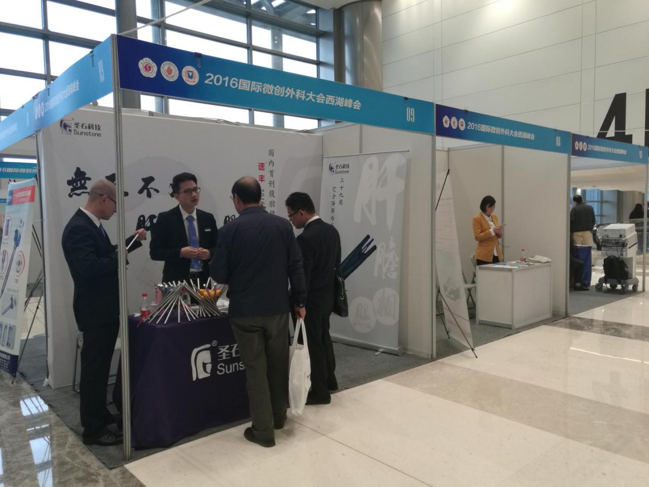 會議茶歇期間,我公司展位吸引了眾多專家醫師們的關注,其中有來自英國皇家英格蘭外科學院的專家代表前來了解我公司產品---速豐?可吸收止血結扎夾,現場我司工作人員欣然以嫻熟的英語為其做介紹與產品演示,我公司產品的特點及優勢得到了英國皇家英格蘭外科學院專家的認可與肯定!