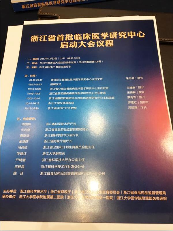 浙江省科學技術廳廳長周國輝、浙江省食品藥品監督管理局局長朱志泉、浙江省科學技術廳副廳長曹新安、浙江省財政廳副廳長金慧群、浙江省衛生和計劃生育委員會副主任馬偉杭、浙江大學副校長羅建紅等領導、負責人、臨床中心單位代表分別進行大會致辭與愿景承諾。