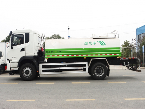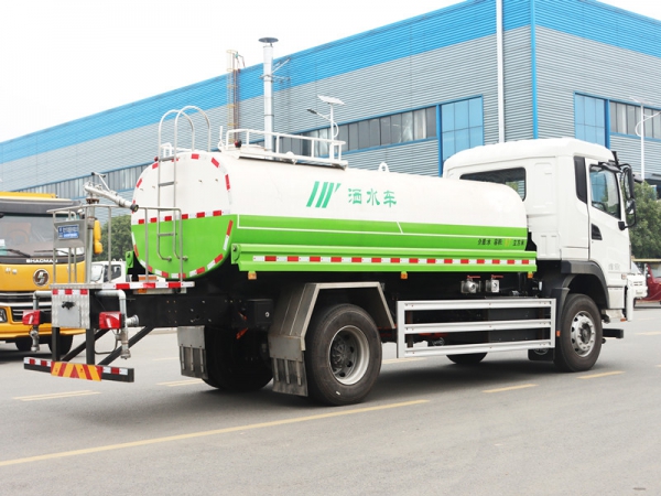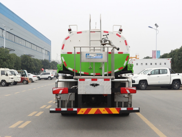 隨底盤(pán)選裝鋁制輪輞、黑底LOGO;側(cè)面防護(hù)裝置材料為鋁合金100,與車(chē)輛采用螺栓連接;后防護(hù)尺寸(mm):2350x60x120x5,離地高度420mm;采用Q345A材料,螺栓連接。動(dòng)力蓄電池種類(lèi):磷酸鐵鋰蓄電池,生產(chǎn)企業(yè):深圳市比亞迪鋰電池有限公司(單體),汕尾比亞迪汽車(chē)有限公司(總成);驅(qū)動(dòng)電機(jī)類(lèi)型:永磁同步電動(dòng)機(jī),額定功率150kW,峰值功率180kW,生產(chǎn)企業(yè):長(zhǎng)沙市比亞迪汽車(chē)有限公司;ABS系統(tǒng)生產(chǎn)企業(yè):威伯科汽車(chē)控制系統(tǒng)(中國(guó))有限公司,ABS系統(tǒng)型號(hào):ABS-E;電池布置位置:車(chē)輛底部;罐體總?cè)萘?8.736立方米,有效容積:8.32立方米,罐體外形尺寸(長(zhǎng)×長(zhǎng)軸×短軸(mm)):4800×2100×1250,專(zhuān)用裝置:罐體和噴灑系統(tǒng),主要用于園林綠化及路面灑水。選裝配件位置及后部指示燈具