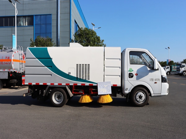 該掃路車采用純電動二類底盤改裝、風(fēng)機、清水箱、垃圾箱、左右立掃、掃盤降塵系統(tǒng)、左右側(cè)噴高、氣動系統(tǒng)、液壓系統(tǒng)、專用裝置電控系統(tǒng)和副車架等改裝而成。