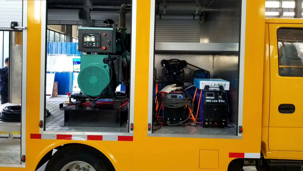 (3)長(zhǎng)途轉(zhuǎn)場(chǎng)托運(yùn)時(shí),車(chē)輛前后左右應(yīng)有固定防滑裝置,且四周留有200mm以上空隙,若自行轉(zhuǎn)場(chǎng)時(shí)一般應(yīng)將前噴嘴和后灑水器卸下以防松動(dòng)丟失。