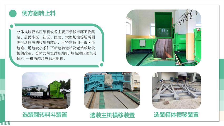 • 分體式水平壓縮垃圾站(側料斗上料)